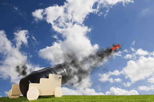 Death-defying stunt where the rider is shot from the cannon…